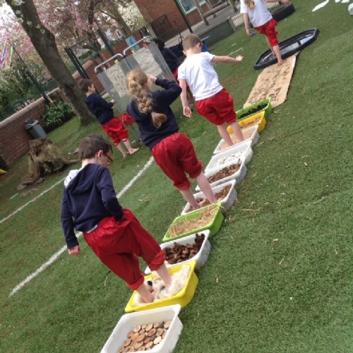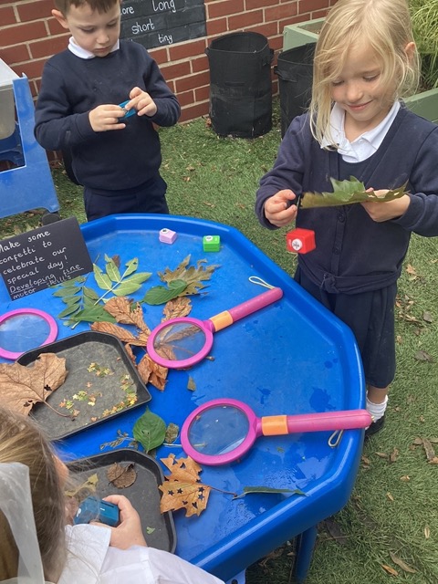 In Science lessons, we often explore and ask questions about our natural world. Here are photographs showing just some of our outdoor Science lessons. You will see examples of children observing and showing care and concern for living things and their habitats as well as children going on nature walks, visiting Stanley Nature Reserve, planting, growing and tending to our allotment areas and exploring the effects of things such as weather, light and shadows, air resistance and making water cycles.