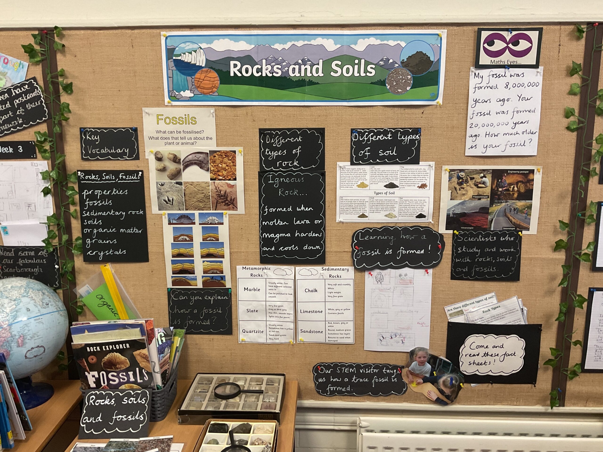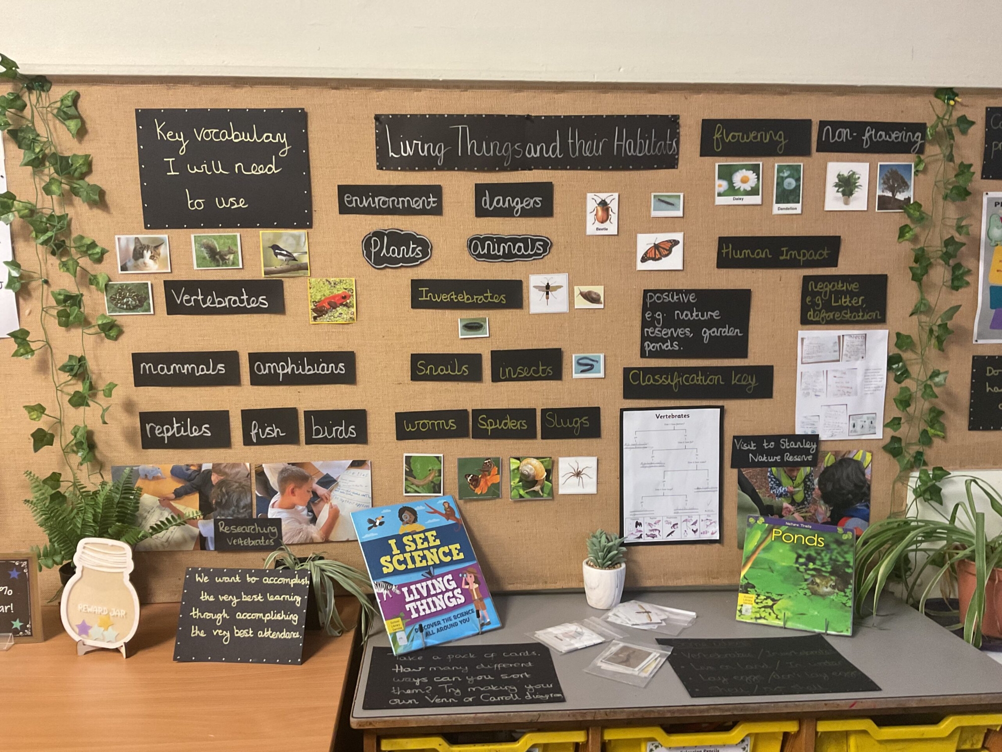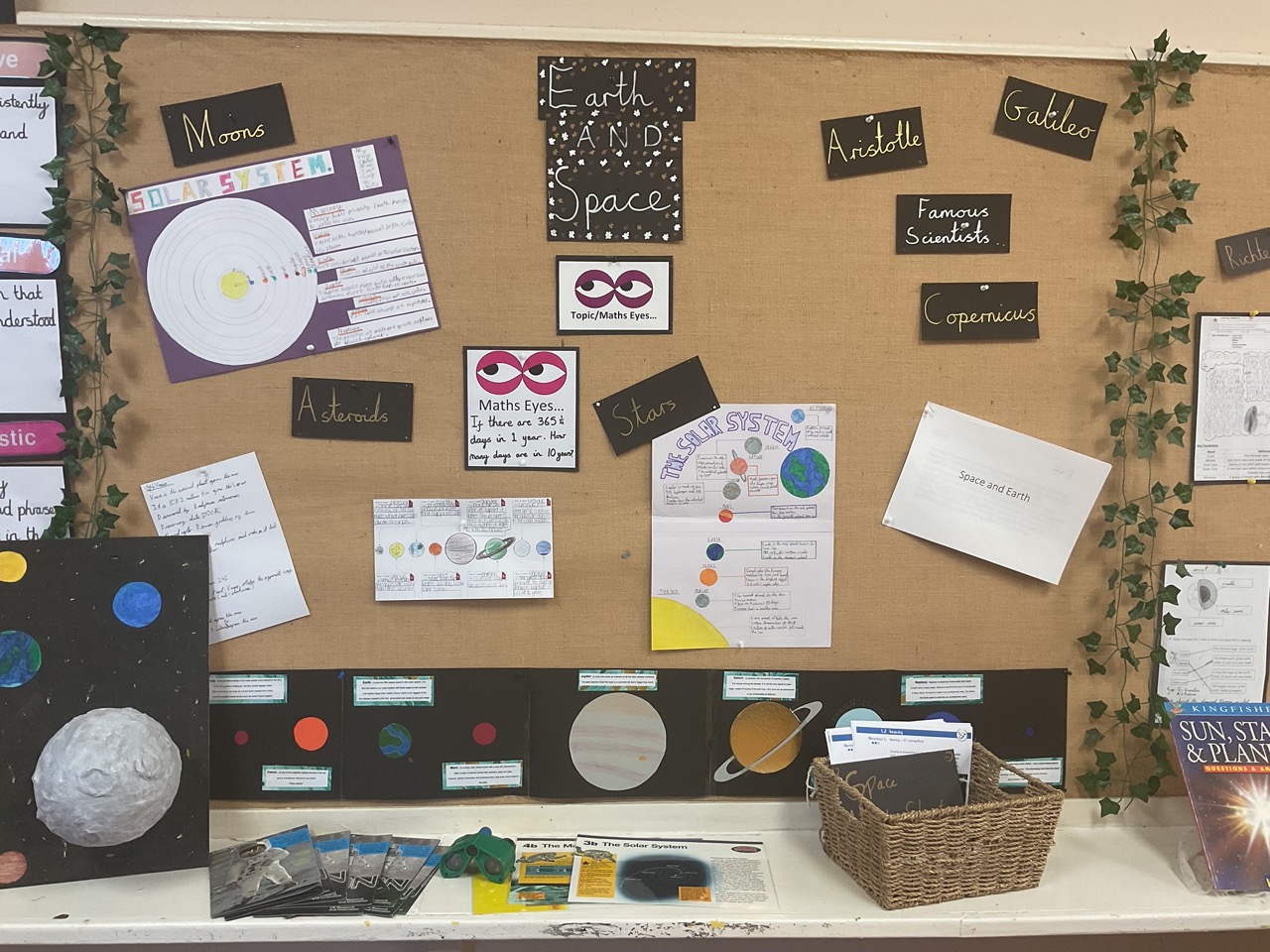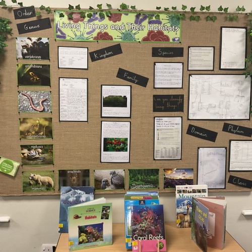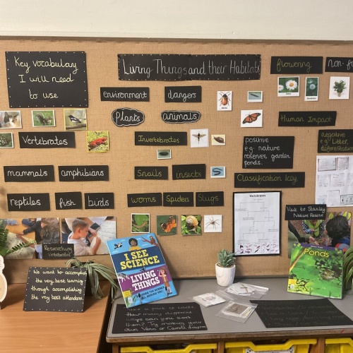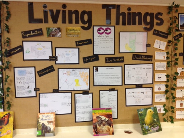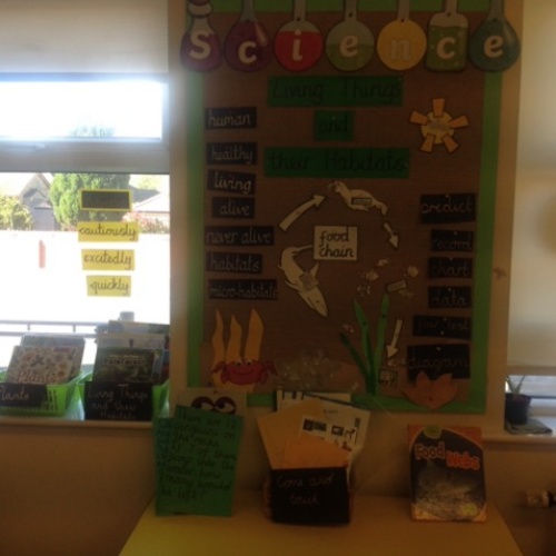 Science displays throughout school have key vocabulary, show children’s cross-curricular work, have ‘Maths Eye’ questions and interactive display tables. Have a look at some examples of Science displays across school.