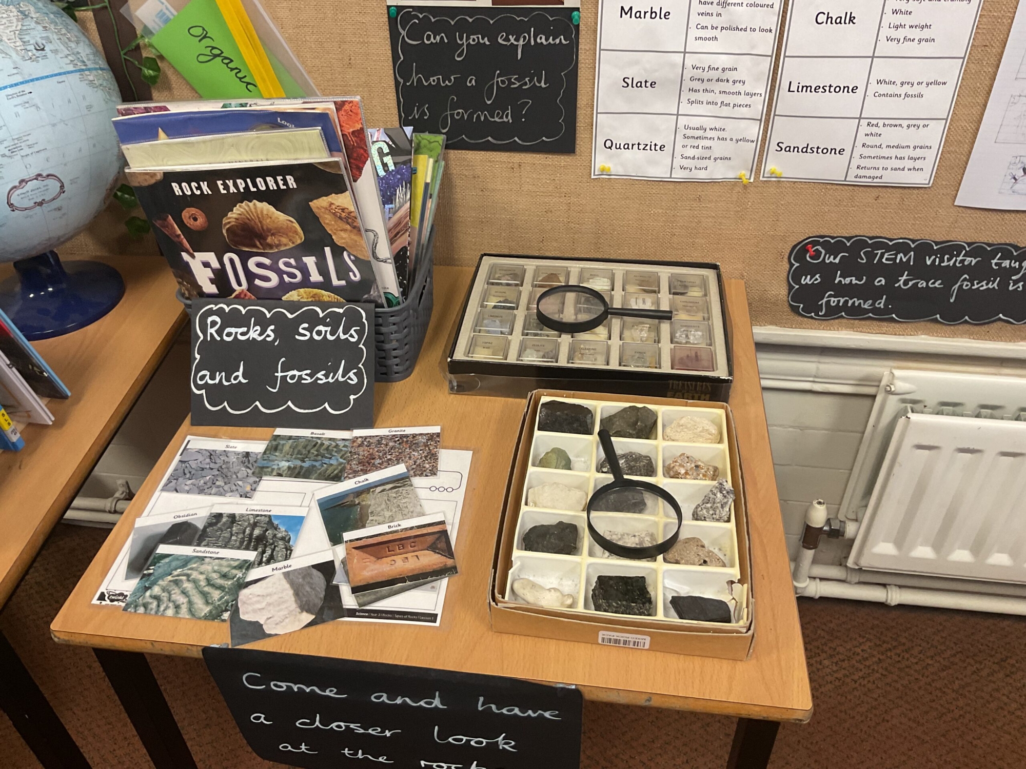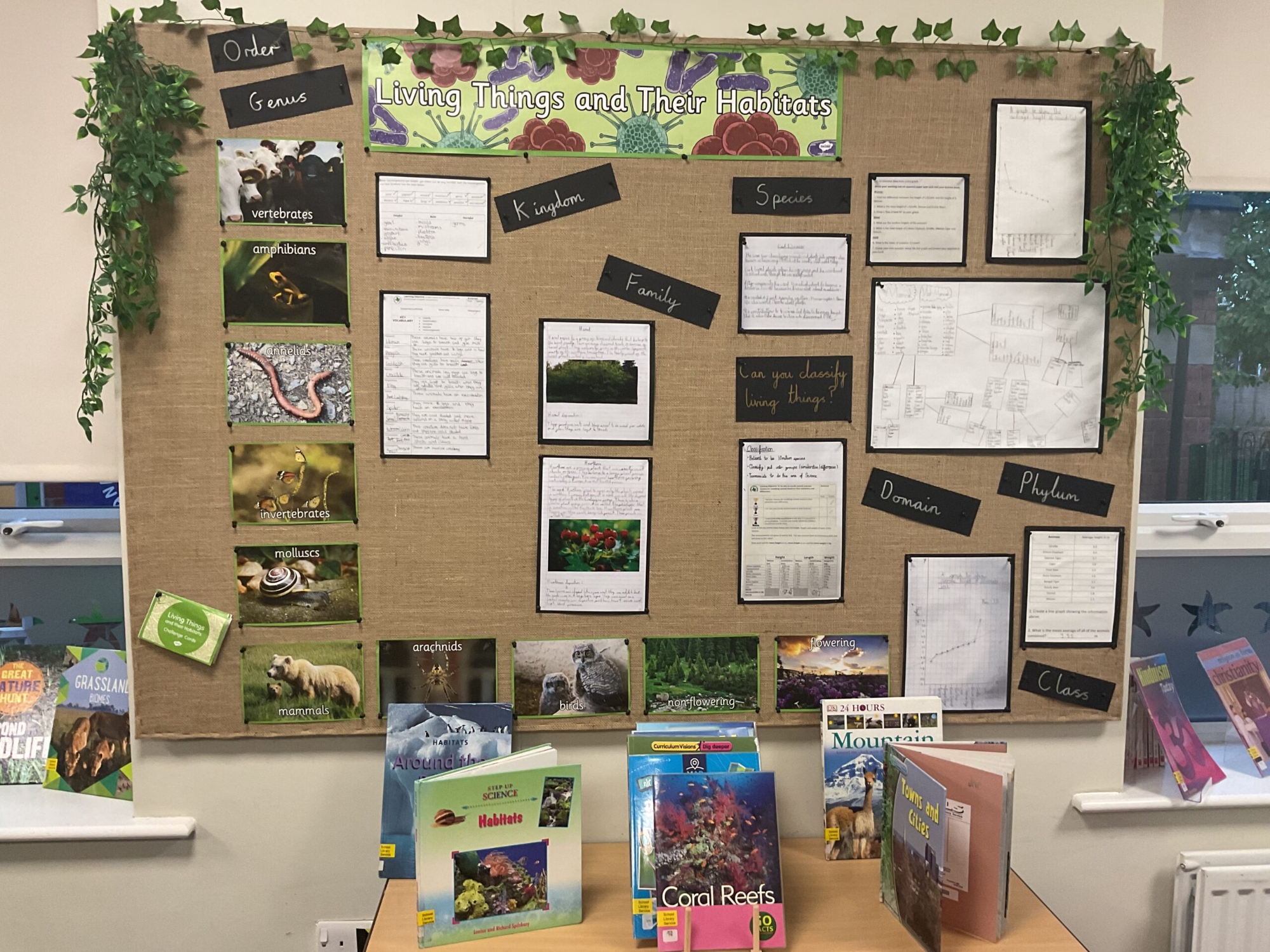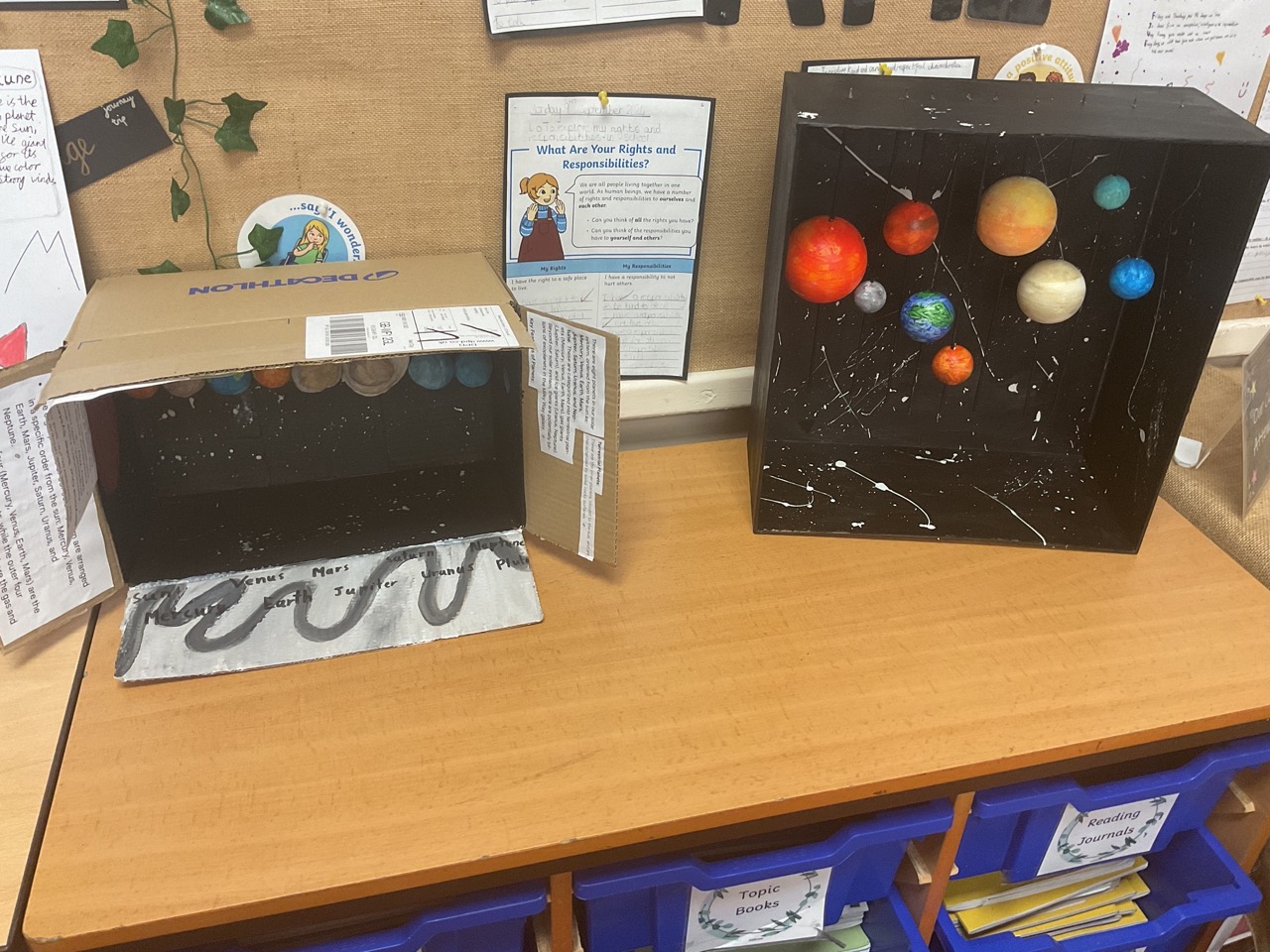 Science displays throughout school have key vocabulary, show children’s cross-curricular work, have ‘Maths Eye’ questions and interactive display tables. Have a look at some examples of Science displays across school.