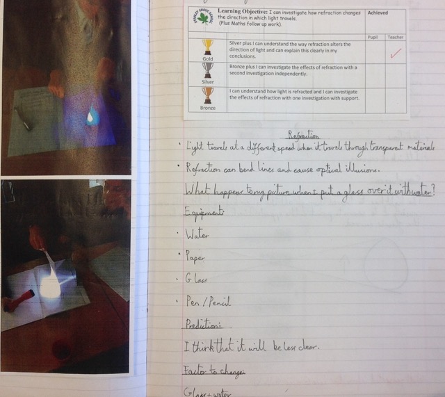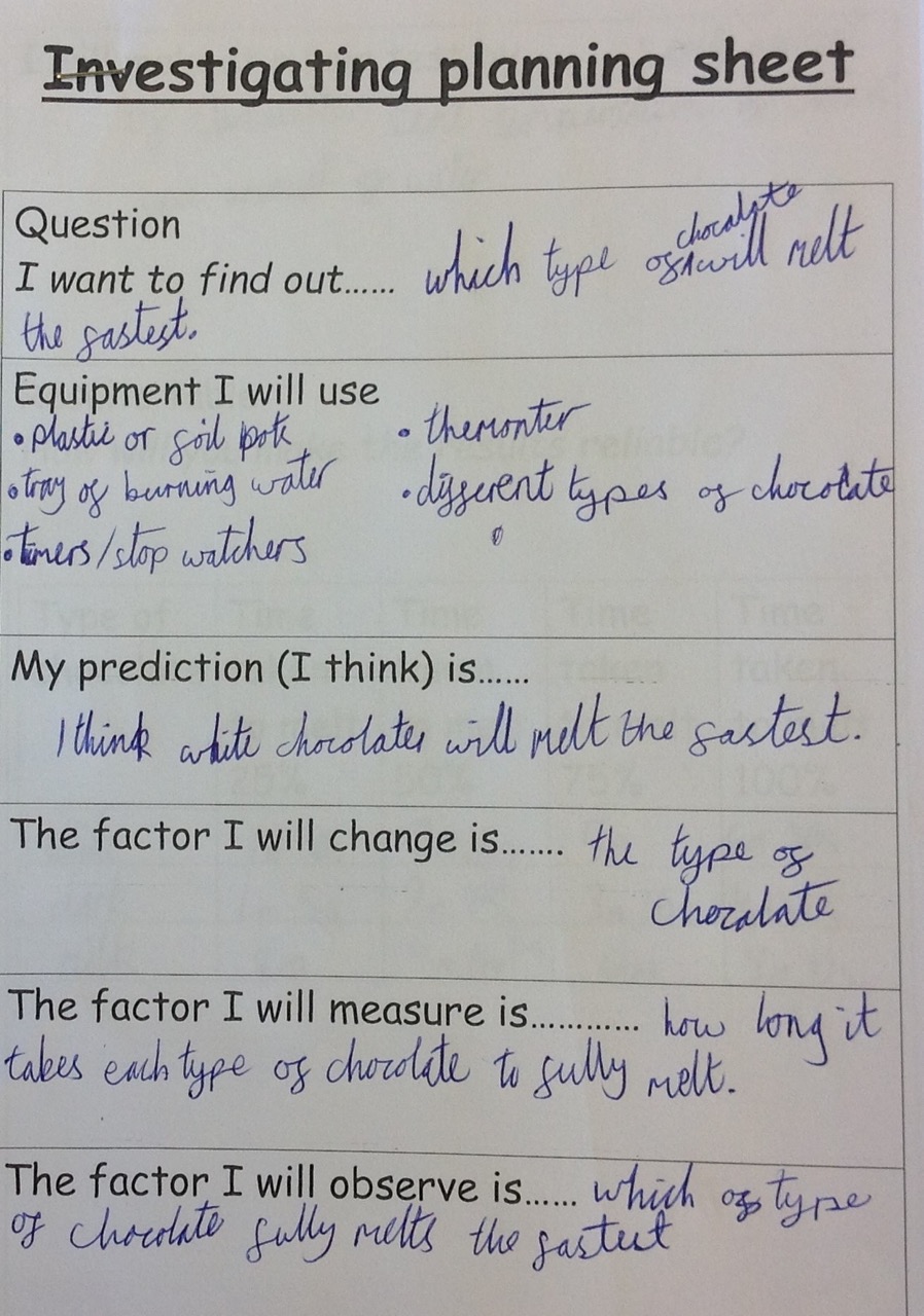 See below for examples of children’s Science work across school. This includes investigations (using planning investigation sheets which are differentiated by year group to allow for progression) as well as examples of independent research and evidence of Maths being taught through Science. Key Scientific vocabulary is evident throughout.